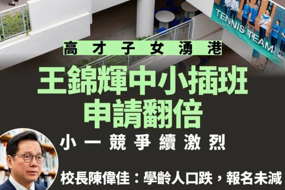 同样拿香港浸会大学附属学校王锦辉中小学举例,它这几年人才子女插班申请人数比2022年前翻倍。